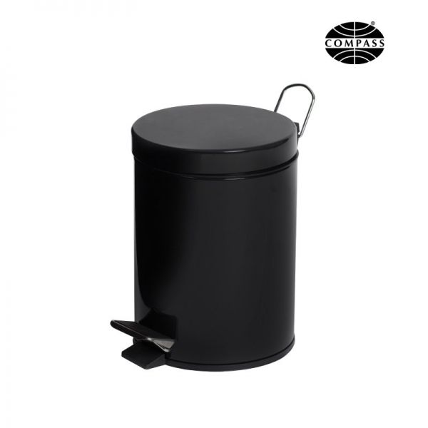 COMPASS ROUND BLACK POWDER COATED PEDAL BIN 5L