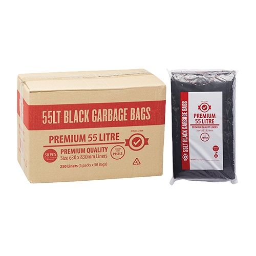 CLEANERS WAREHOUSE PREMIUM 55LT BLACK BIN LINER CTN of 250